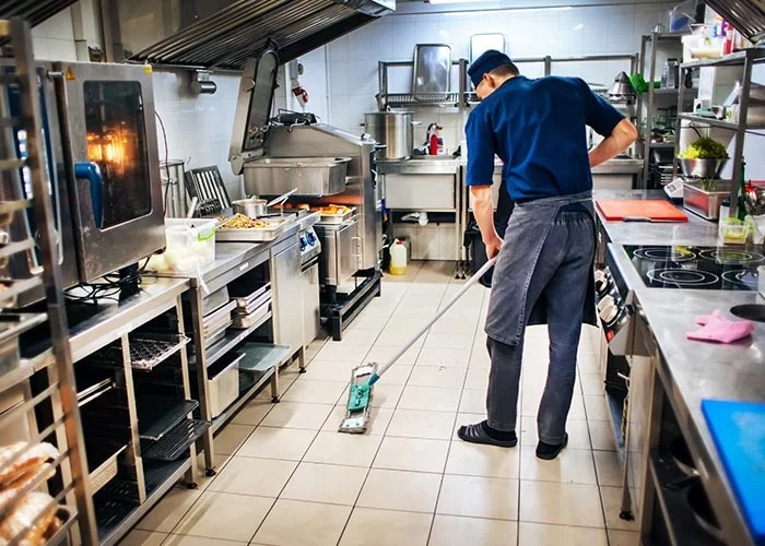 Nettoyage strict pour cuisines et espaces clients.